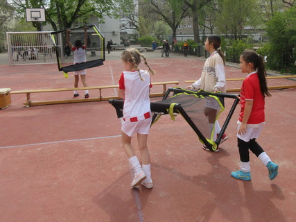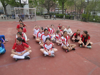 Am schwersten von unseren vier Mannschaften hatte es Team II, das ausschließlich mit Drittklässlerinnen besetzt war. Hier spielten Aygül, Amelly, Elena P., Eftalya (alle 3a) und Sarah (3b). Für Eftalya war es das erste Turnier. Vor allem Elena beeindruckte mit tollen Dribblings, doch war sie beim Torschuss noch unsicher, sodass sie die Minitore meist verfehlte und sich für ihre gelungenen Aktionen nicht belohnen konnte. Im Spiel um Platz 5 gegen unsere vierte Mannschaft gelang ihr dann aber wie auch Sarah ein Treffer, doch ging das Spiel 2:3 verloren. |