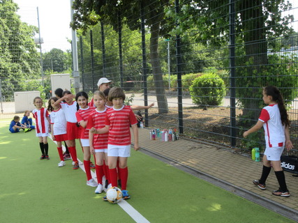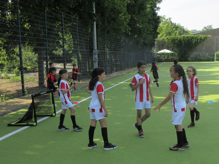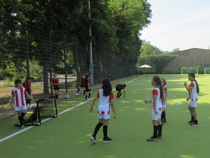 Am 22. Juni folgte dann die zweite Ausgabe des Freundschaftsturniers, diesmal mit uns als Gästen im Stadion Wilmersdorf. Anders als beim letzten Turnier kamen nun unsere Dritt- und Viertklässlerinnen zum Einsatz, was einen ausgeglicheneren Wettkampf versprach. Wieder trat jede Schule mit vier Mannschaften an. |
