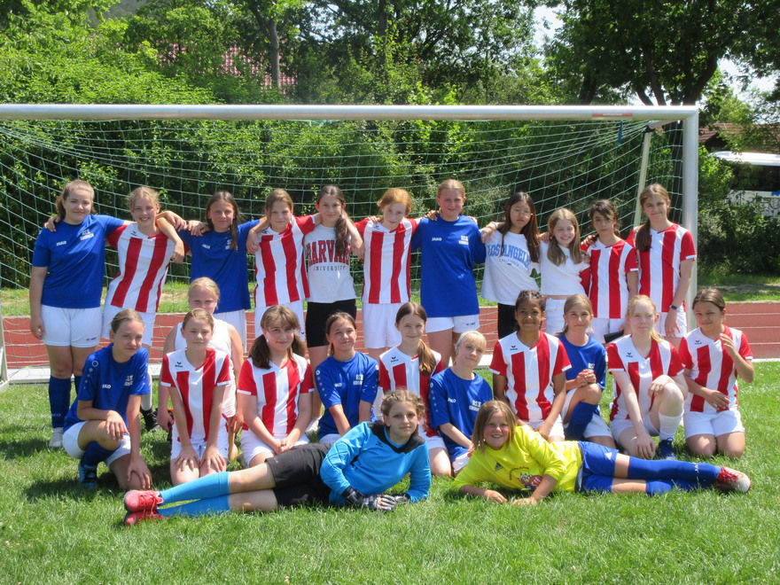 In der ersten Halbzeit hütete Ajlin in gewohnter Weise das Tor und in der Abwehr startete Zoe H. (beide 6a) neben Miray (5b), die den Vorzug vor Mascha (6a) erhielt, weil sowohl Mascha als auch Zoe bei der Berliner Feldrunde aus Altersgründen nicht mitspielen konnten und Trainer Herr Kohler mit Miray wenigstens eine Spielerin in der Defensive auf dem Platz haben wollte, die diese Spielfeldgröße gewohnt war. Sehr stark besetzt war unser Mittelfeld mit Ronja, Malak (beide 6a) und Mia (5b). Im Sturm lief Zoe N. (6a) auf, die zuletzt bei einem Freundschaftsturnier gleich fünf Tore geschossen hatte und nun Lara ersetzte, die bedauerlicherweise nicht mitspielen konnte. Dasselbe galt auch für Yuyi und Hadassa (alle 5b), die sich kurz vor der Abschlussfahrt leider im Training den Arm gebrochen hatte, zum Glück aber die Fahrt trotzdem mitmachen konnte. |