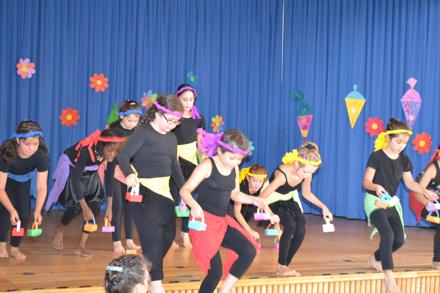 Oben: Die Tanz-AG tanzt unseren neuen Schülern vor, was